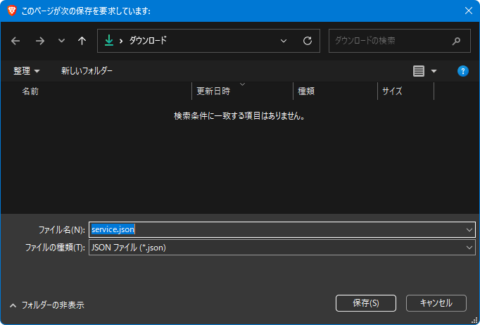 「JSONダウンロード」ボタンを押すと以下のダウンロード用のダイアログボックスが表示されますので、設定ファイルの内容に関わらず現在画面に登録されている最新の設定ファイルをダウンロードする事ができます。ダウンロードしたファイルはバックアップ用として保存しておくか、別の環境の設定ファイルとしてご利用頂けます。