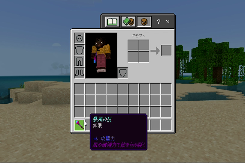 本環境のビヘイビアパック/リソースパックを含めたアドオンパックを適用しておけば、以下の方法で「暴風の杖」が手に入ります。
